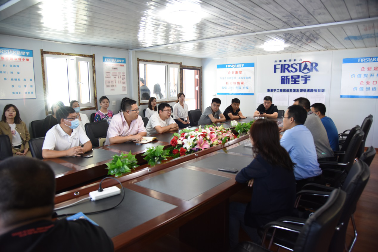 徐征宇一行首先到项目部召开座谈会,会上,孙大伟总经理对各位领导及同事的莅临表示热烈欢迎,然后对工程进展情况进行了详细的介绍。孙大伟表示,目前工程正在有条不紊的推进当中,为保证8月30日桥上通车目标,倒排工期,建立了临时调度小组,日调度,加班加点作业,每天上报完成目标及进展情况。